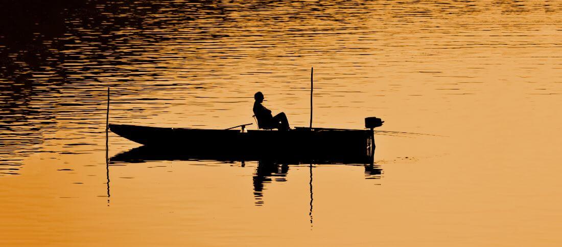 Calm Water Fisherman In Boat - Sepia by Alain. Bring your artwork to life with the texture and depth of a stretched canvas print. Your image gets printed onto our premium processed canvases and then stretched on a white maple wooden frame (gallery wrap) or framed inside black maple (framed canvas). Your canvas print will be shipped within 4 days in "ready to frame" condition for normal rolled and "ready to hang" condition for frames and wraps with pre-attached hanging wire and/or mounting points.