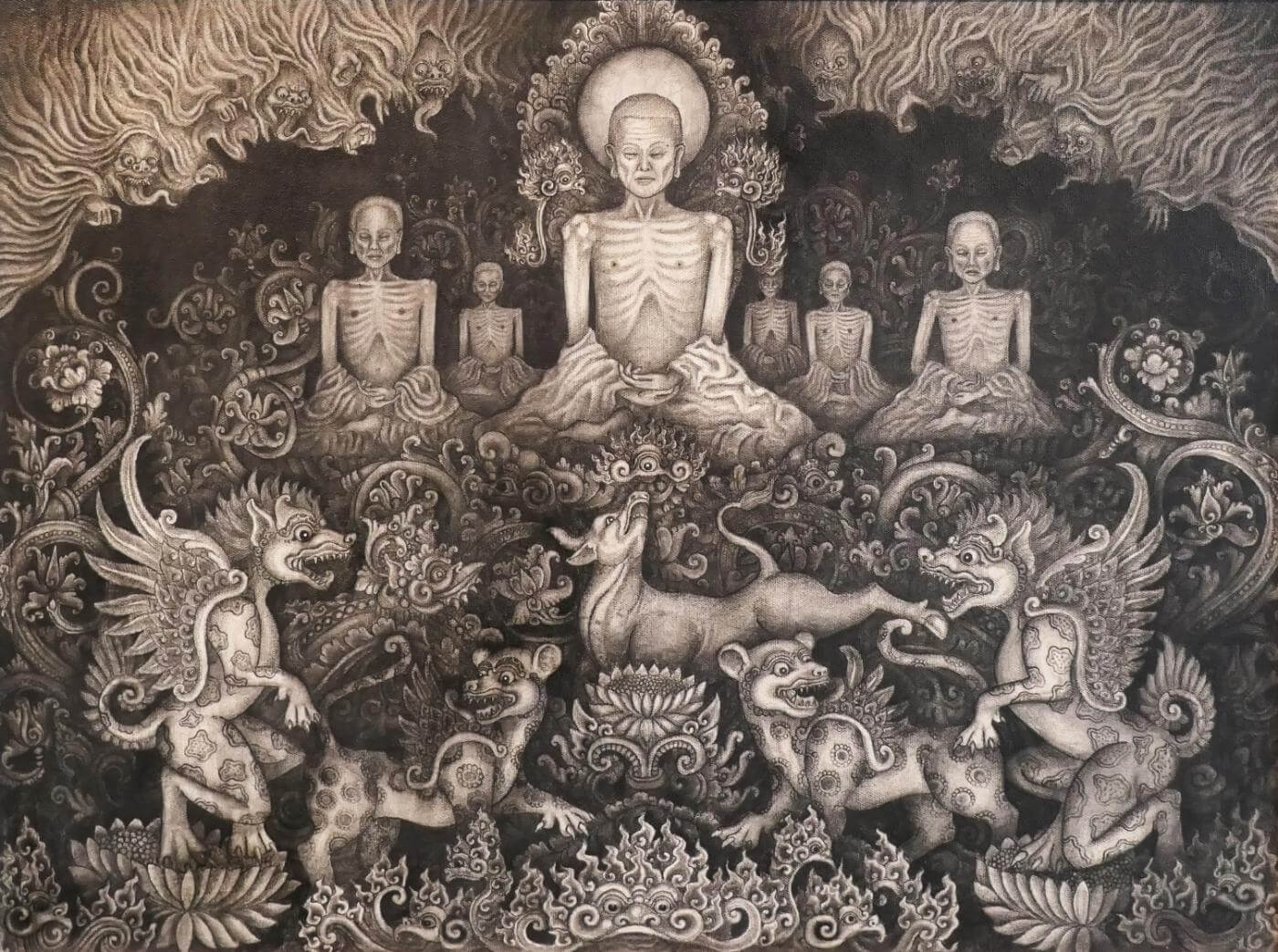 The Austerities Of Ascetic Gautama - Balinese Buddha Painting - Canvas Prints