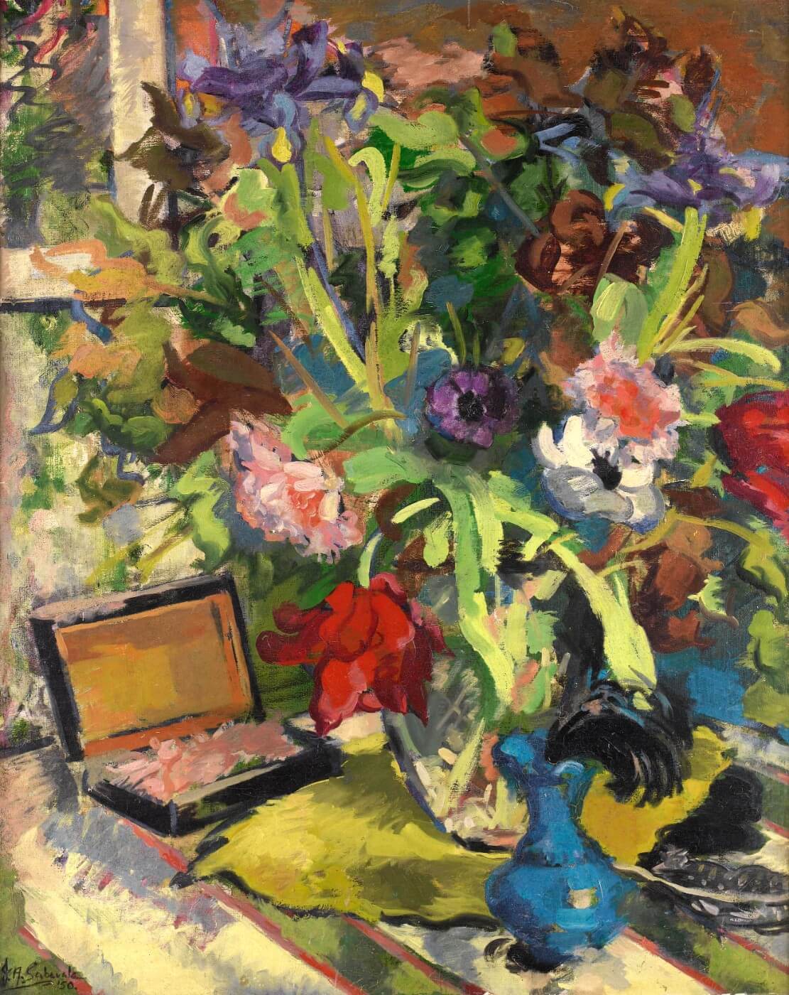 "Untitled (Flower Vase)" is a famous still-life painting by the Indian master Jehangir Sabavala. Describing his palette as quiet, this modern Indian artist says that veiled light and middle-tones appeal to him much more than pure colours and loud imagery. The celebrated painter’s eclectic art is a fine blend of cubist and impressionist styles. His visual language has often been compared to that of known Cubist masters. Although there exists an underlying similarity and a common thread, at the obvious level, his serene images stand for fractured shards of reality.