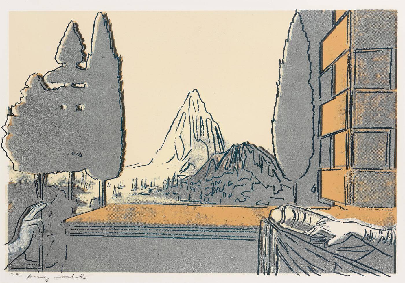 The Annunciation (Details Of Renaissance Paintings Series, Leonardo da Vinci - Peach Grey) - Andy Warhol - Pop Art Print - Large Art Prints