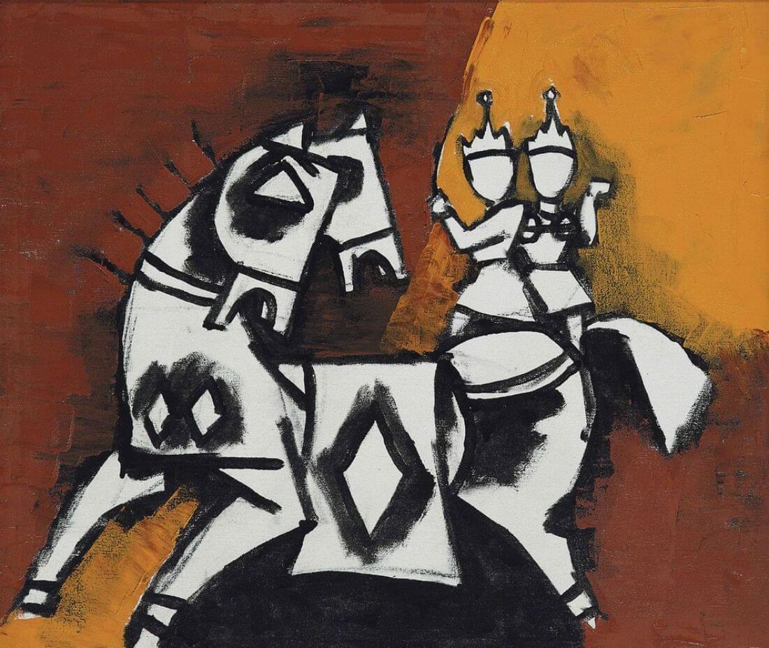 Maqbool Fida Husain (1915 - 2011) was a modern Indian painter of international acclaim, and a founding member of The Progressive Artists Group of Bombay (PAG). M F Husain was associated with Indian modernism in the 1940s.