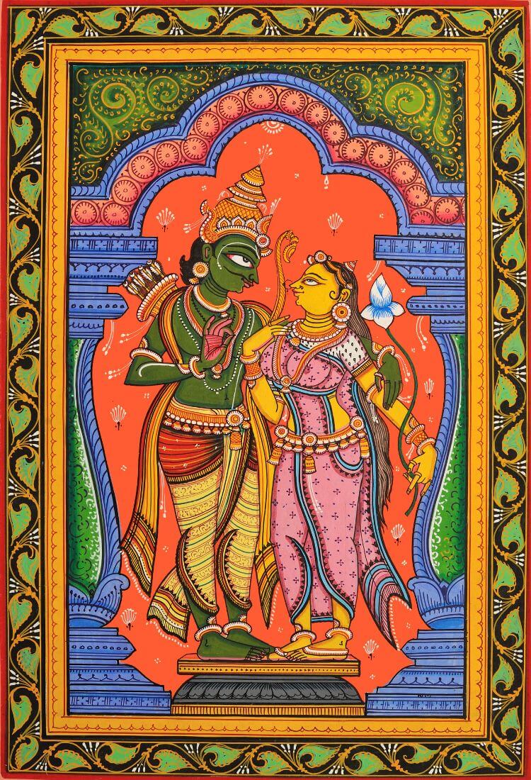 Ram And Sita - Ramayan Pattachitra Painting - Indian Traditional Art - Framed Prints