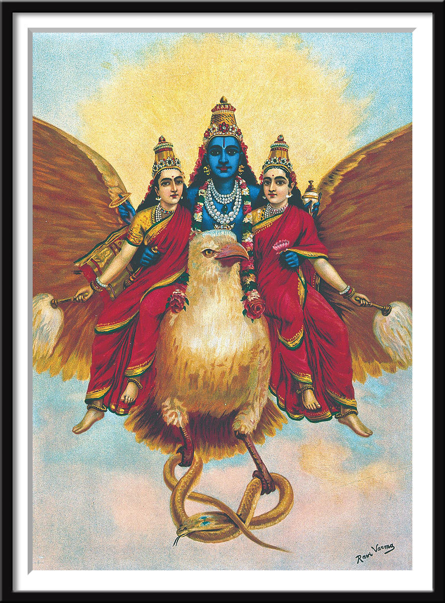 Set of 10 Best of Raja Ravi Varma Spiritual Deities Paintings - Framed Poster Paper (12 x 17 inches) each
