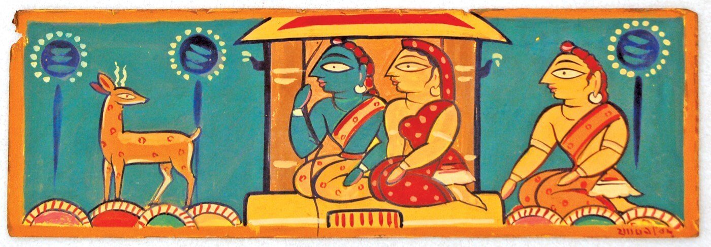 Jamini Rai captured the qualities that are a part of the native folk painting and recombined them with those of his own. He fused the minimal brush strokes of the Kalighat style with elements of tribal art from Bengal.