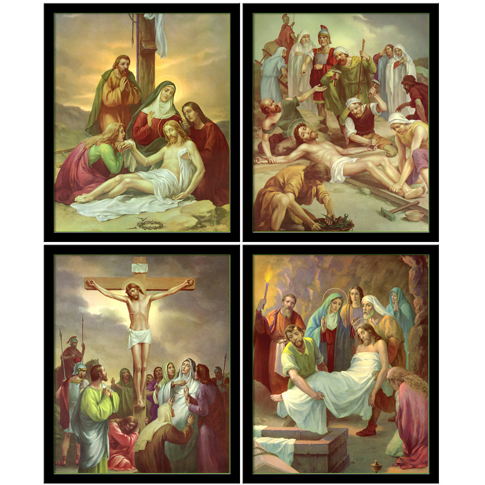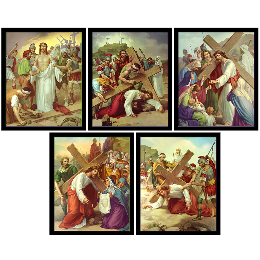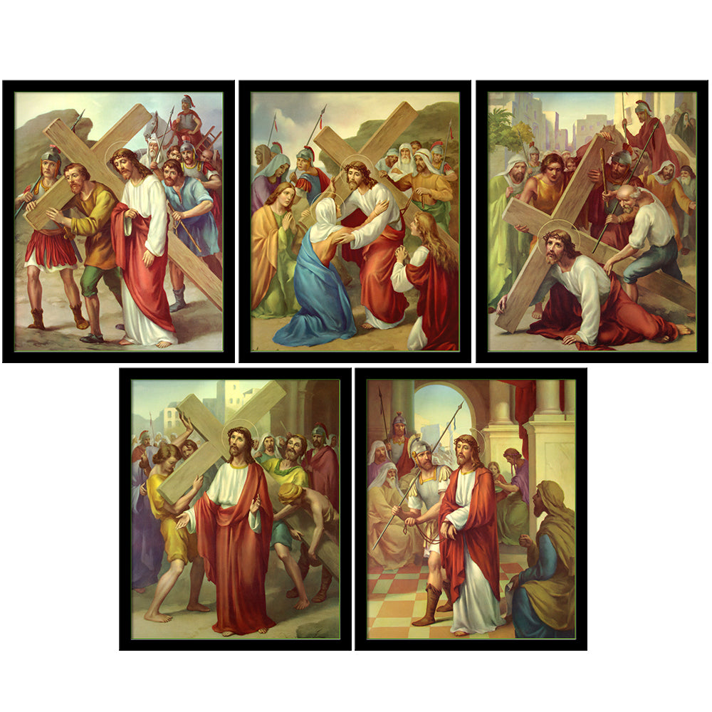 Stations Of The Cross - Christian Art Collection - Set Of 14 Framed Canvas (12 x 15 inches) Each