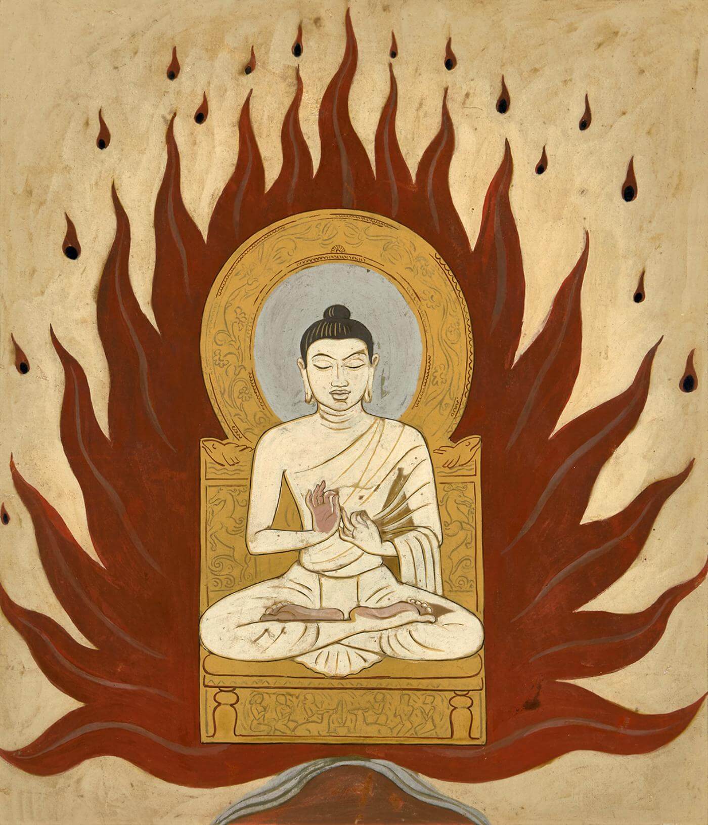 Buddha – Painting by Krishna Kattingeri Hebbar – A modernist interpretation of the Buddha by renowned Indian artist K. K. Hebbar, blending traditional spiritual themes with contemporary artistic expression. The artwork radiates serenity, simplicity, and inner peace.