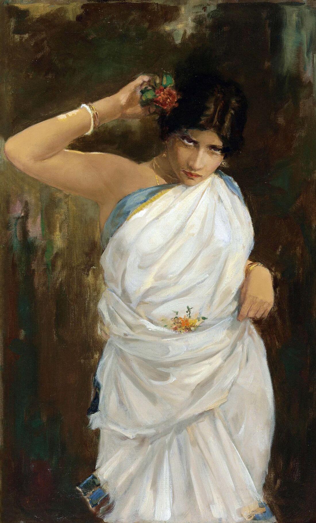 Painting in European academic realist language, he was one of the co-founders of the Indian Academy of Fine Arts in 1919. Early in his career, he was known for his portraits of Indian royalty and paintings of women, whom he painted in diaphanous clothes. After Ravi Varma, he became the most sought-after artist for oil portraits.