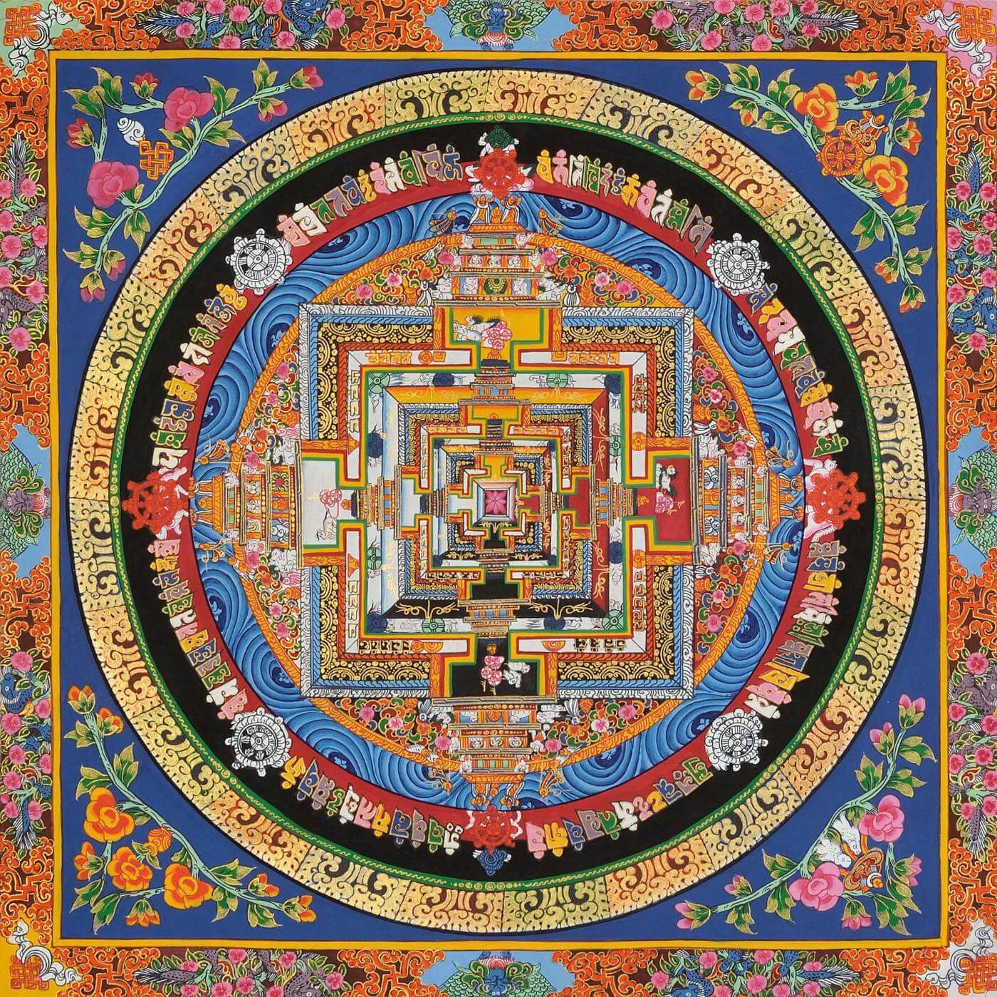 Mandala – Buddhist Thangka Painting"A traditional Buddhist Thangka painting featuring a sacred Mandala, symbolizing the universe and the path to enlightenment. Rich in intricate detail and vibrant colors, the Mandala represents balance, harmony, and spiritual wholeness. Often used in meditation and rituals, this timeless artwork invites inner peace and mindfulness while reflecting the profound wisdom of Tibetan Buddhist traditions