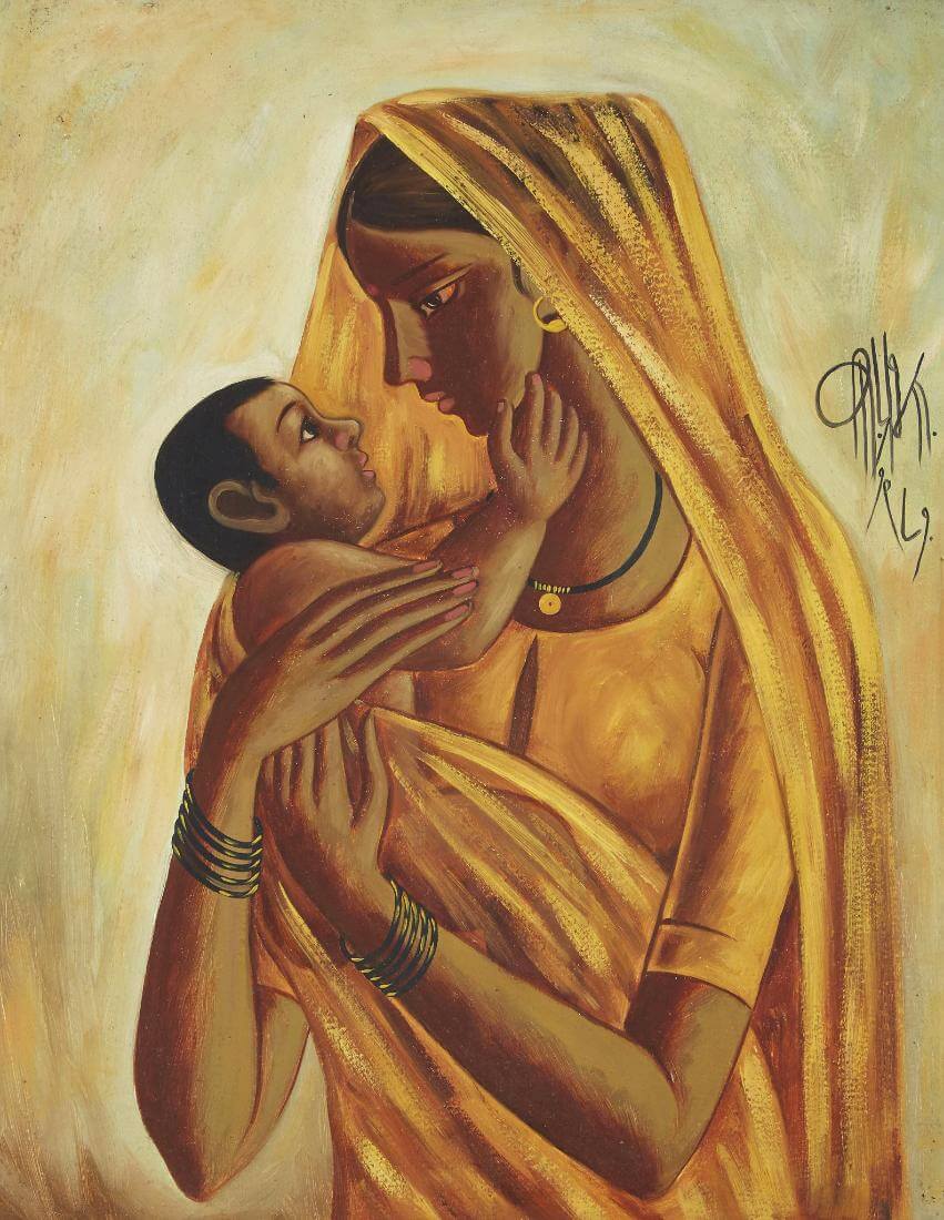 Mother And Child - B Prabha Painting - Indian Masters Art - Posters