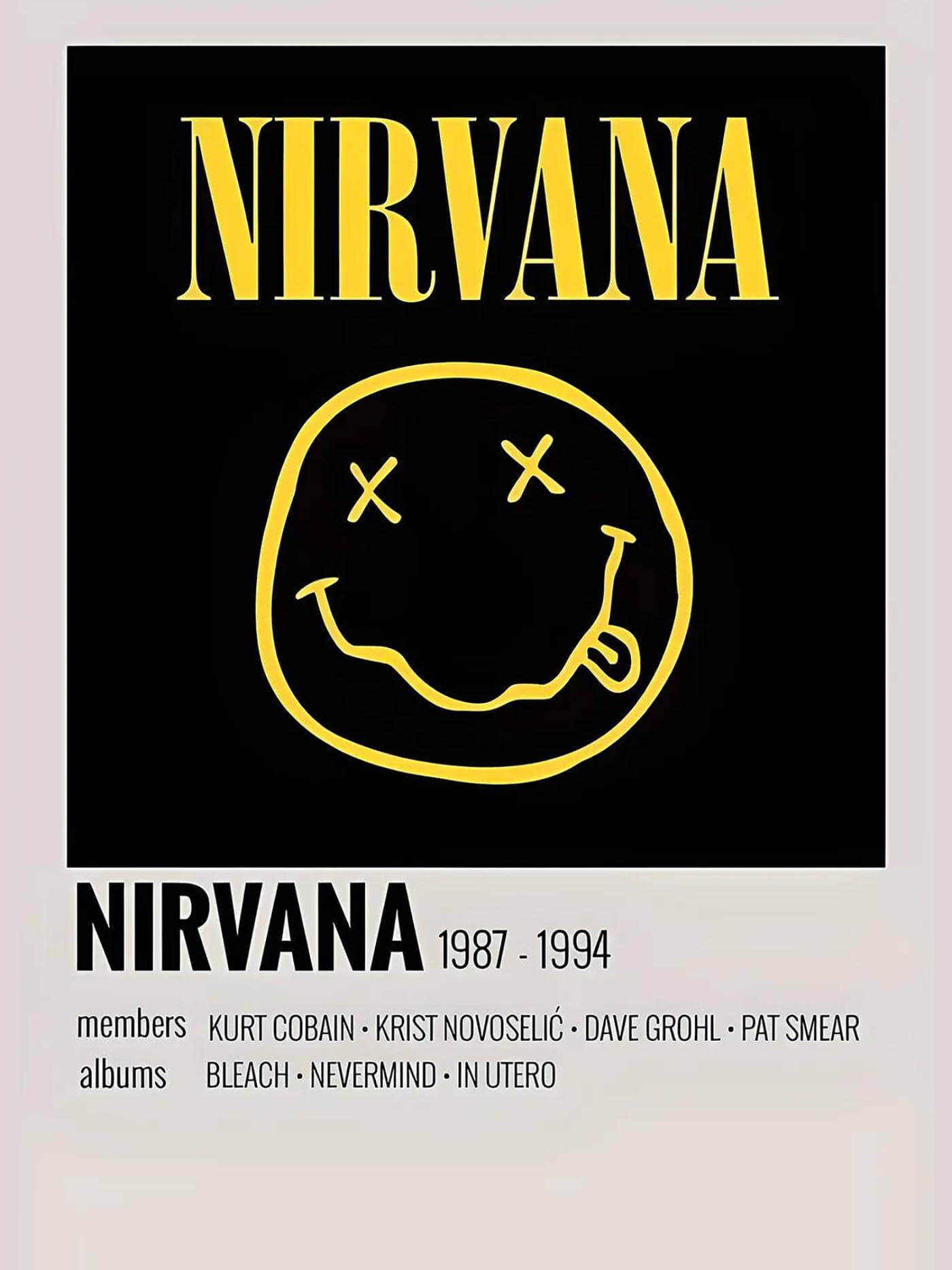 Nirvana - Fan Art Graphic Poster by Tallenge Store. Our art prints are produced on acid-free 220 GSM papers using archival inks and lamination to guarantee that they last a lifetime without fading or loss of color. All prints include a sufficent white border around the image to allow for future framing, if desired. Product will be shipped in 2 days