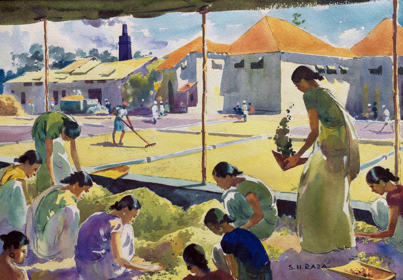 Raking Farmwork - Syed Haider Raza (Early Works) - Canvas Prints