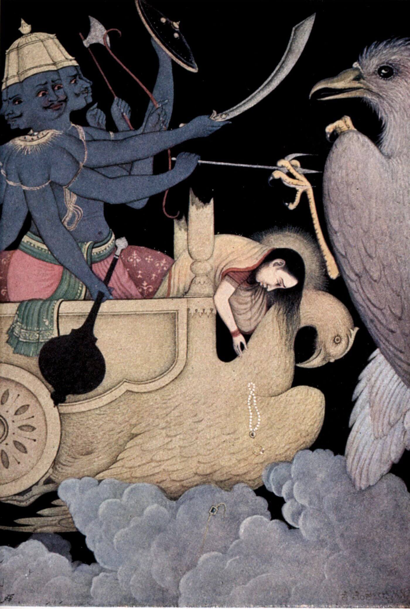 Ravana Fighting With Jatayu - Indian Miniature Painting From Ramayan - Vintage Indian Art - Large Art Prints