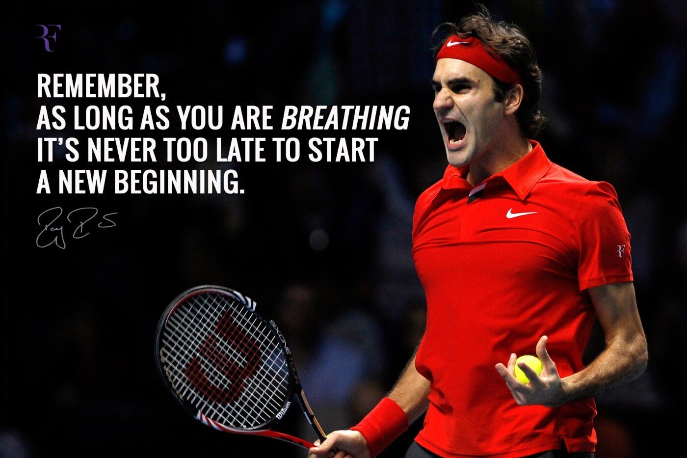 Remember As Long As You Are Breathing Its Never Too Late To Start A New Beginning - Roger Federer Motivational Quote - Legend Of Tennis - Tallenge Spirit Of Sports Poster Collection - Posters