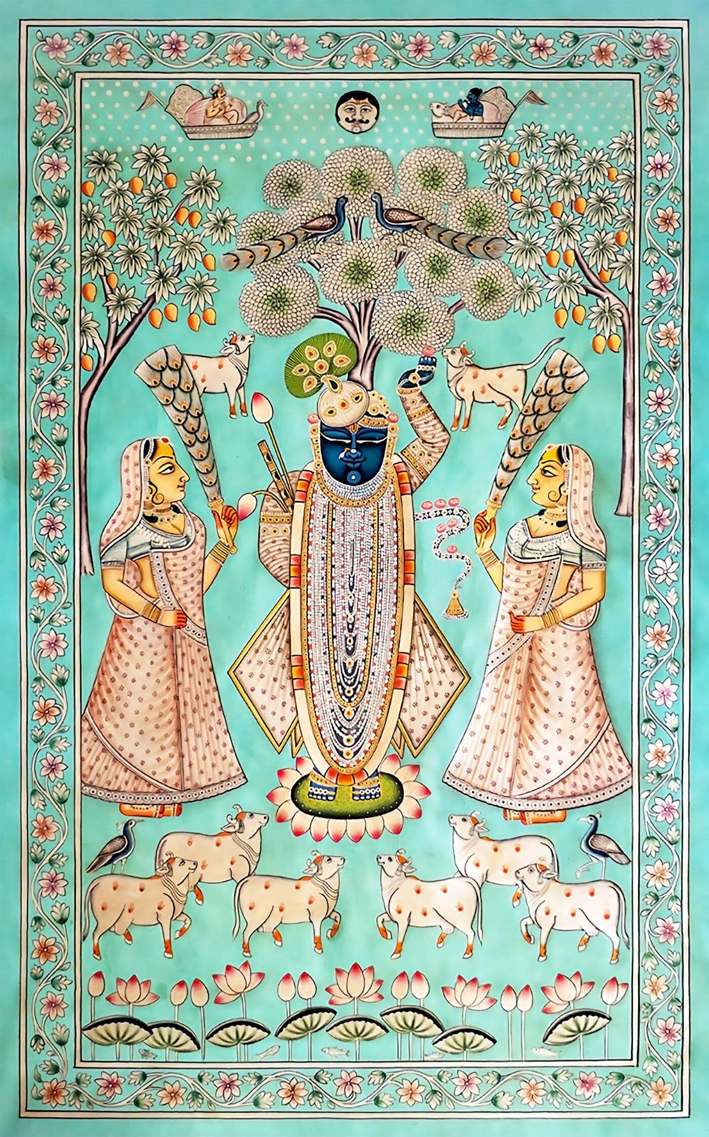 Shrinathji Darshan - Nathdwara - Krishna Pichwai Indian Painting - Canvas Prints