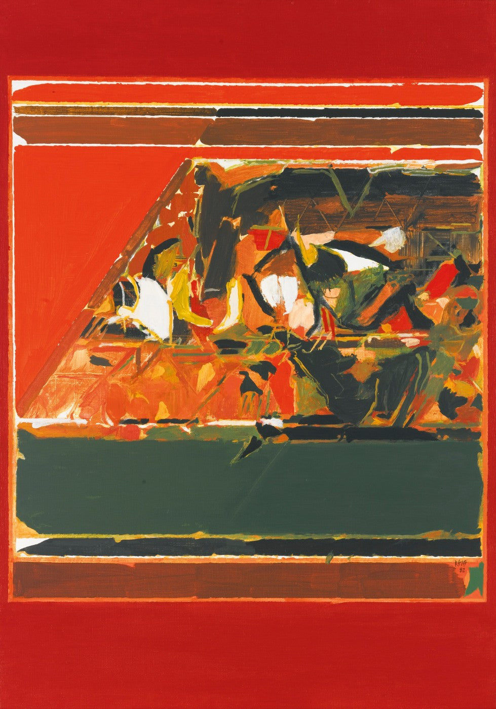"Sayed Haider Raza, “S H Raza” is one of the most respected Modernists of India and is celebrated for his range of styles and the uniqueness of his vision. His early forms reflect a mastery of abstraction and after years of travel, exploration, and experimentation, he returned to Indian visual idioms for inspiration in the late 1970s, culling from tantric imagery. SH Raza looked to forms as the bindu (seminal source of energy), beej (seed), and garbagraha (sanctum sanctorum or hallowed space) for inspiration. Furthermore, he ascribed color with symbolic meaning and transformed local visual traditions into universal yet deeply personal spiritual iconographies.) "
